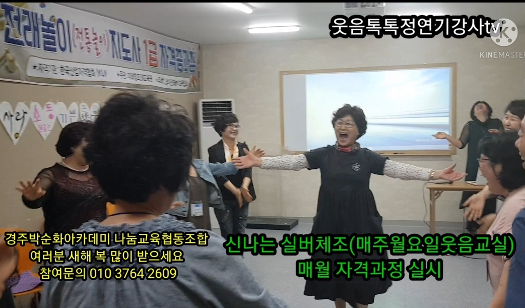반짝반짝 율동을 통하여 모아놓은 스트레스를 한번에 날려 줍니다 경주웃음치료사 박순화아카데미 월요웃음교실에 오시면 이렇게 노래연습, 실버체조를 할 수있는 좋은 기회가 생깁니다.