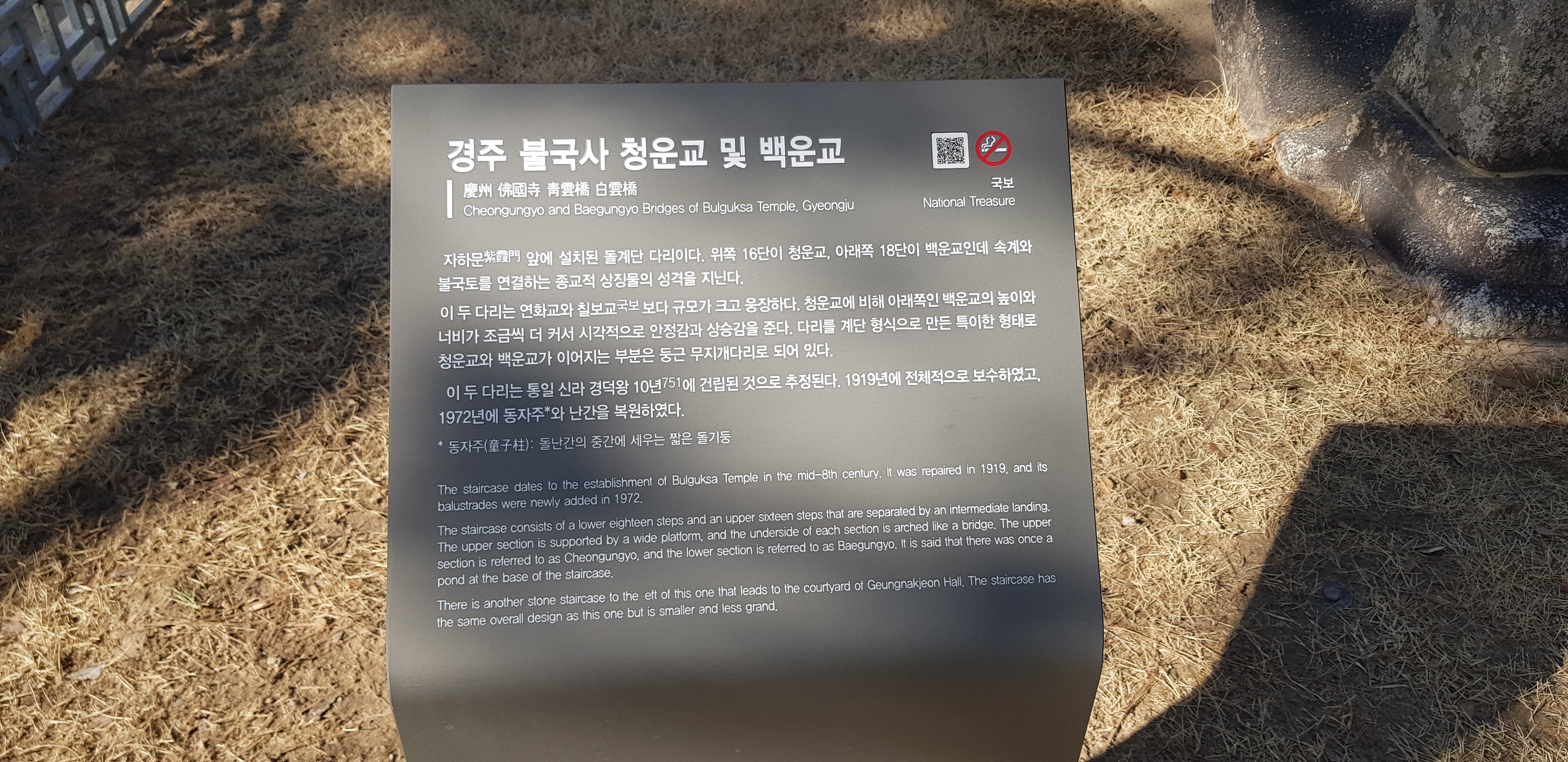 다보탑앞에서 사진을 찍었습니다. 돌사자 1마리가 외롭게 바라보고 있네요 원래는 총4마리인데 3마리는 일제시대에 잃어버린것 같아요~ 지금도 세계의 모든 나라에 찾고있는 광고를 내고 있다고 합니다.