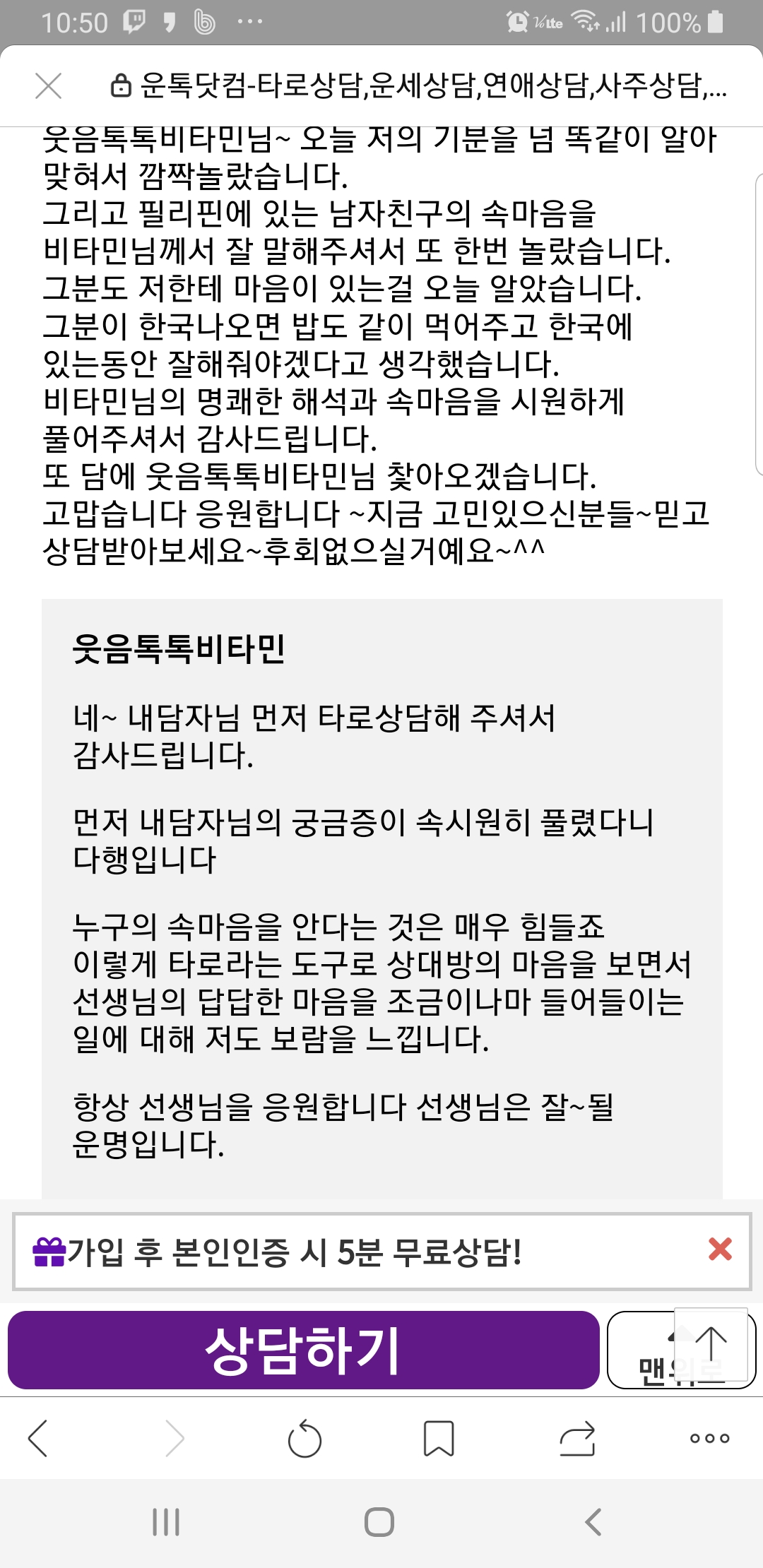 운톡닷컴에서 웃음톡톡비타민 타로심리상담사와 애정운,재회운,직장운,금전운을 만나보세요