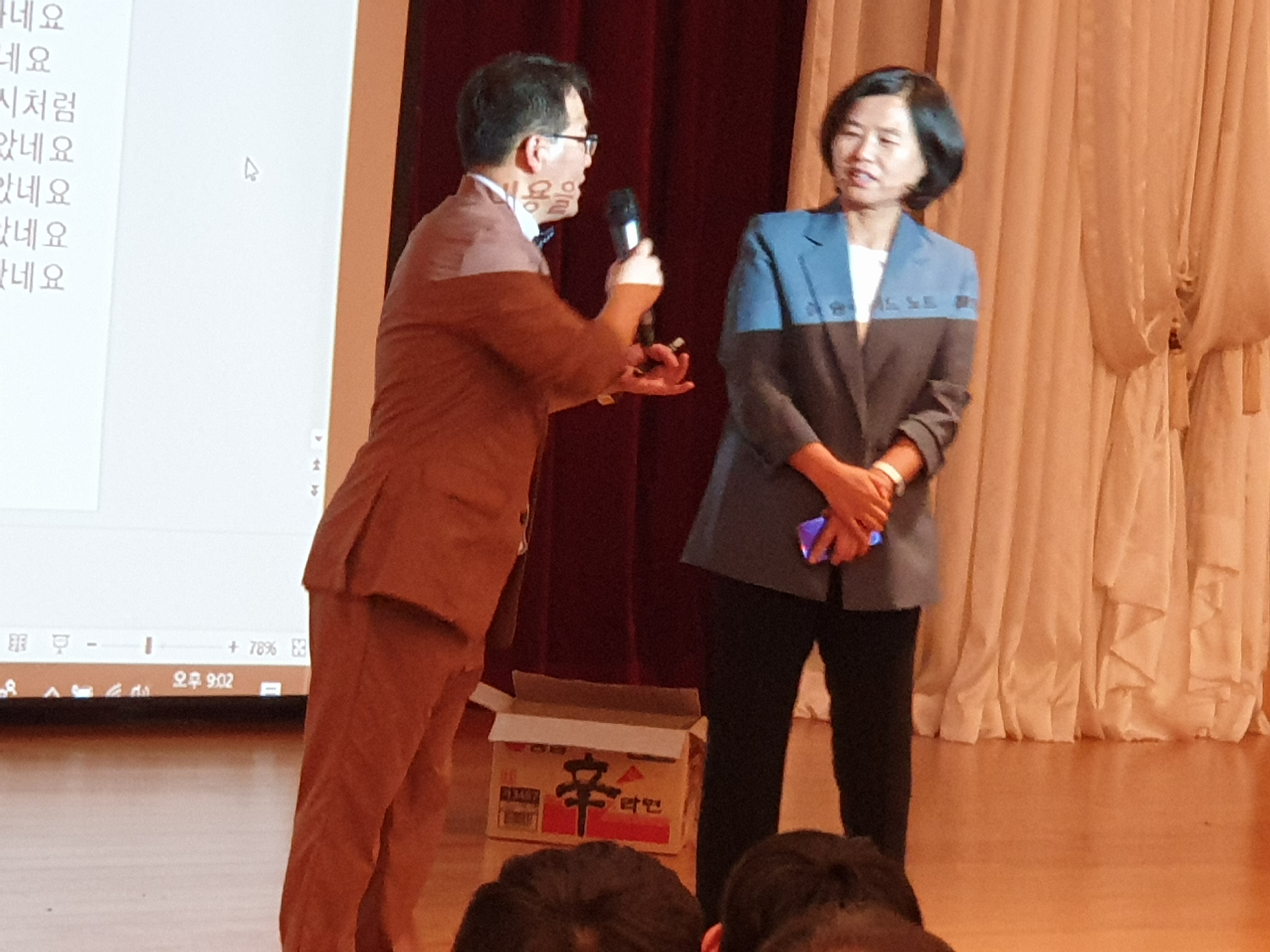 드디어 1차교육을 마치고 2부순서로 웃음톡톡 정연기강사와 함께하는 신나는 레크레이션이 열렸습니다.