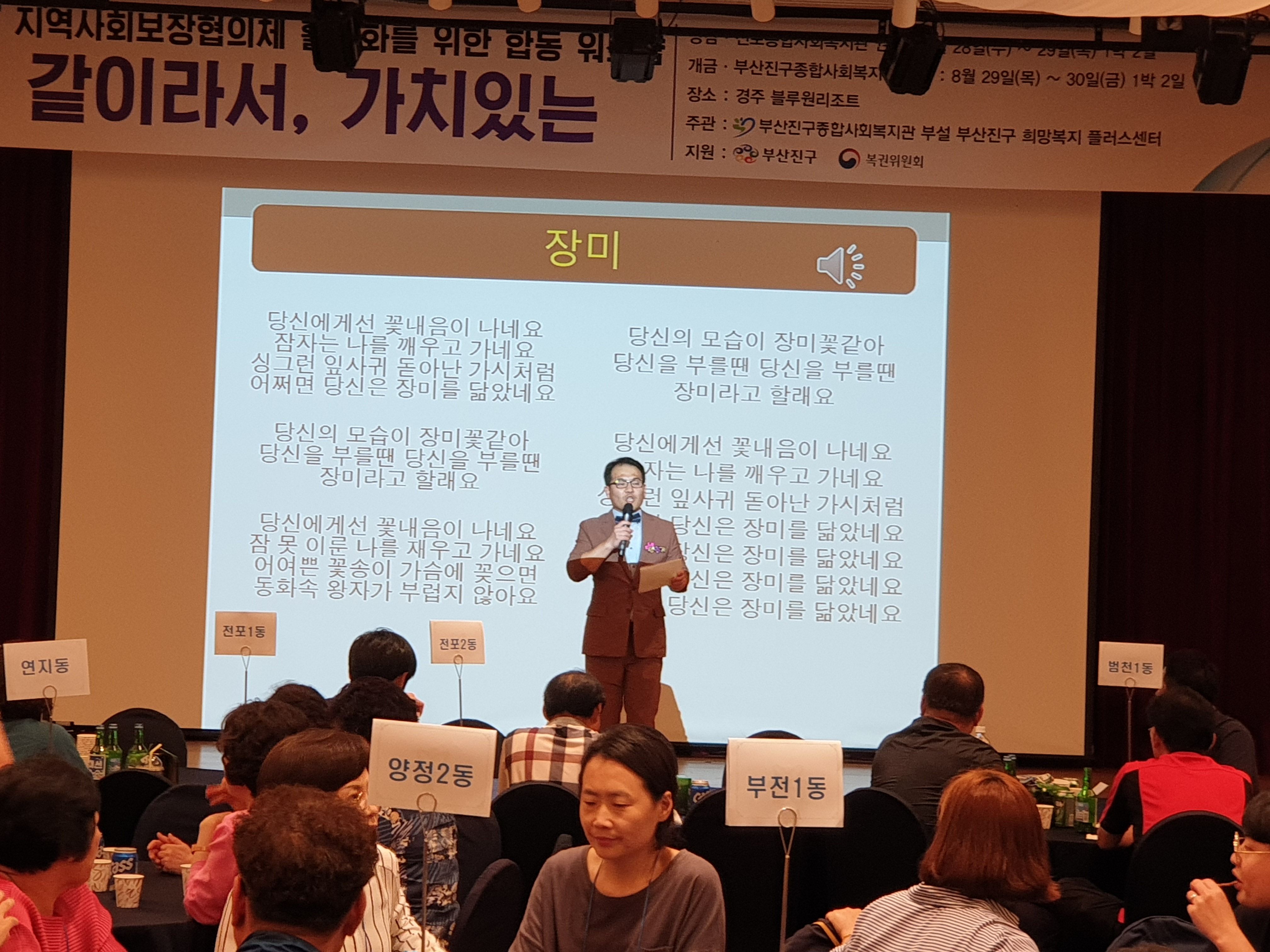 부산지역 20개 동이 참가하여 지역사회를 논하는 자리였습니다.