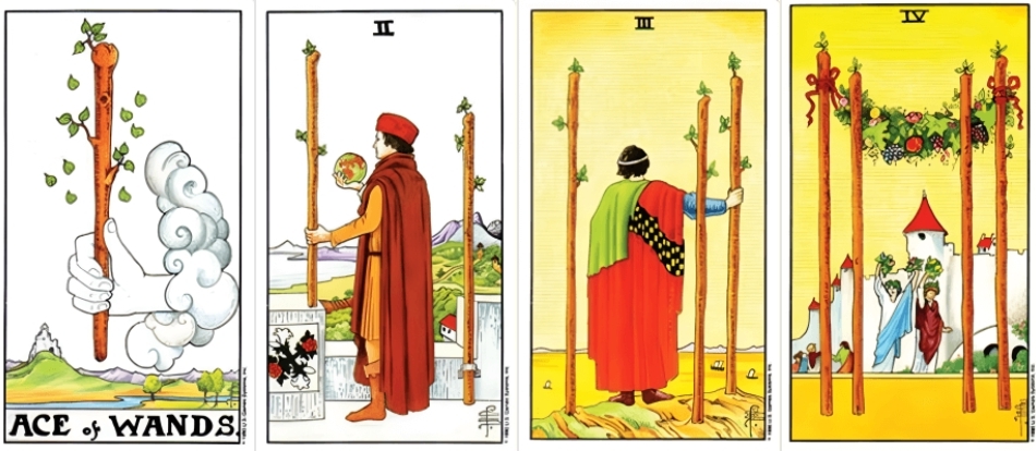 **4. 완드 (Wands)** – 열정, 행동, 창조, 에너지