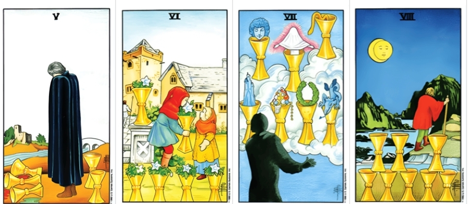 **1. 컵 (Cups)** – 감정, 관계, 사랑, 직관
