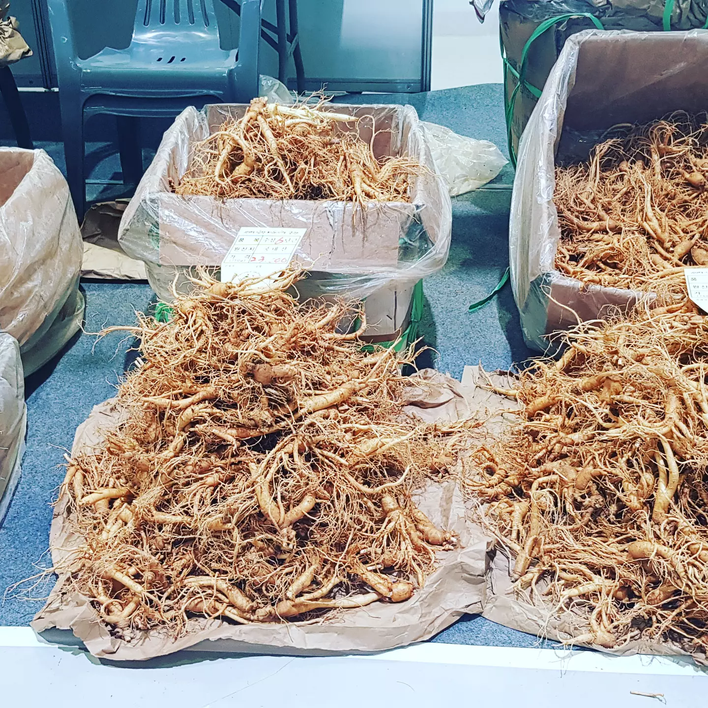 먼저 밭에서 금방 뽑아온 수삼이 보이네요~ 6년근 인삼 이라고 하네요~ 같은 밭에서 6년을 보냈지만 굵기가 다 다릅니다. 굵기에 따라 가격도 달라진다고 합니다.