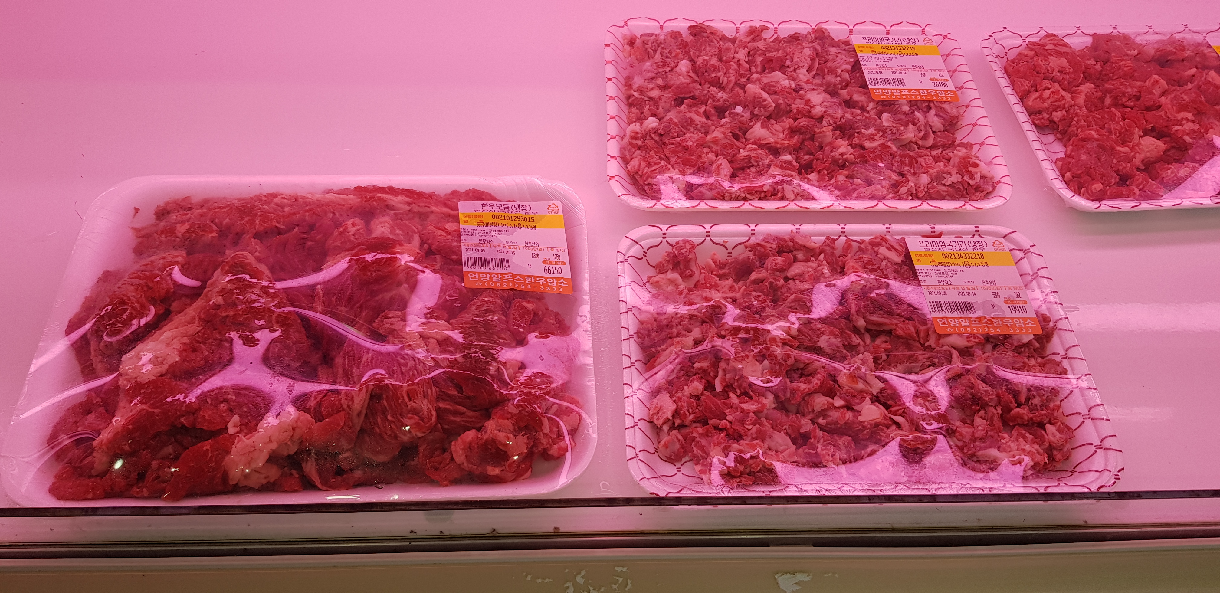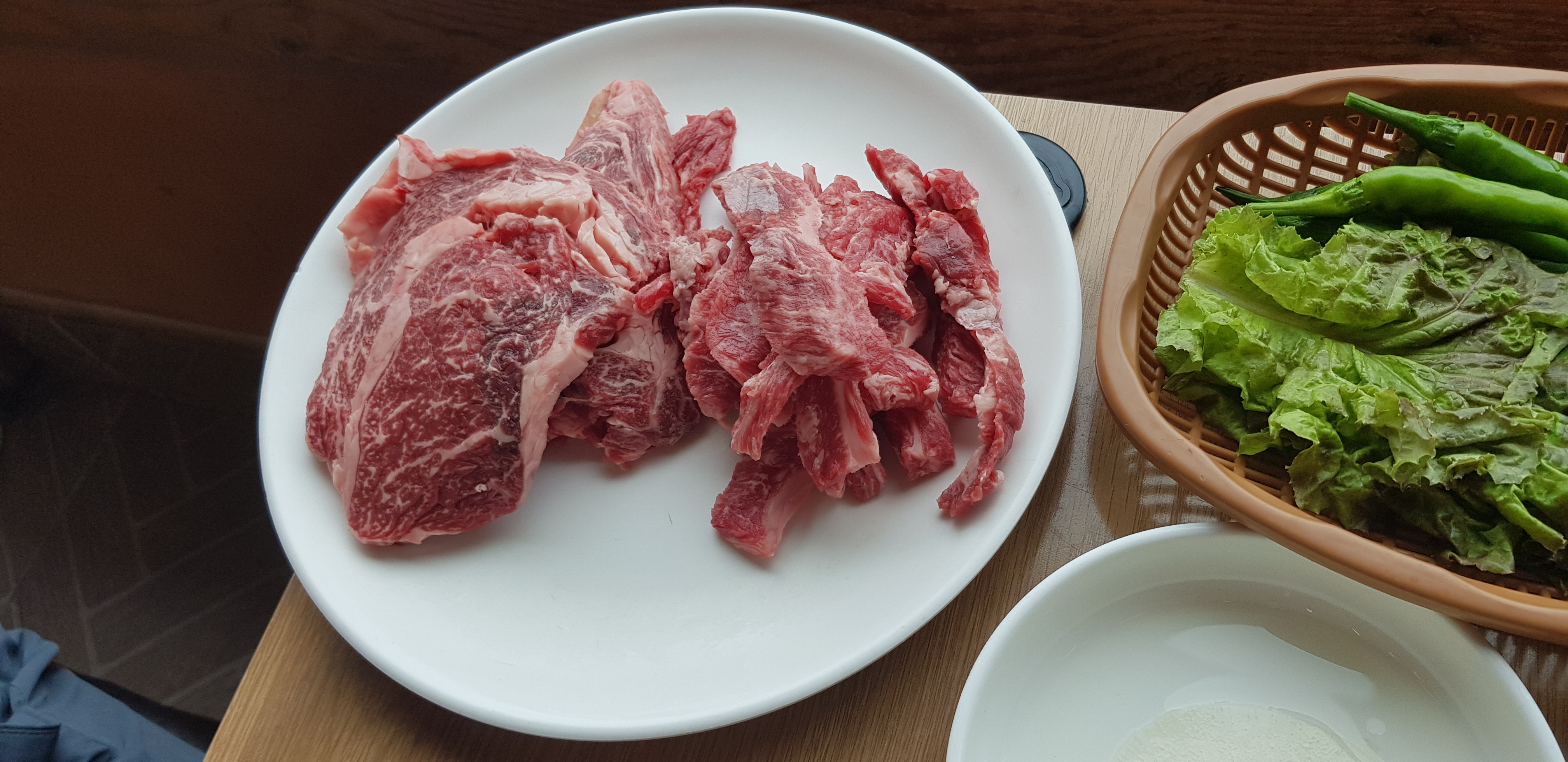 1층에서 고기를 골랐는데요~ 꽂등심과 갈비살을 골라왔습니다. 물론 빛깔에서 신선도가 보이네요