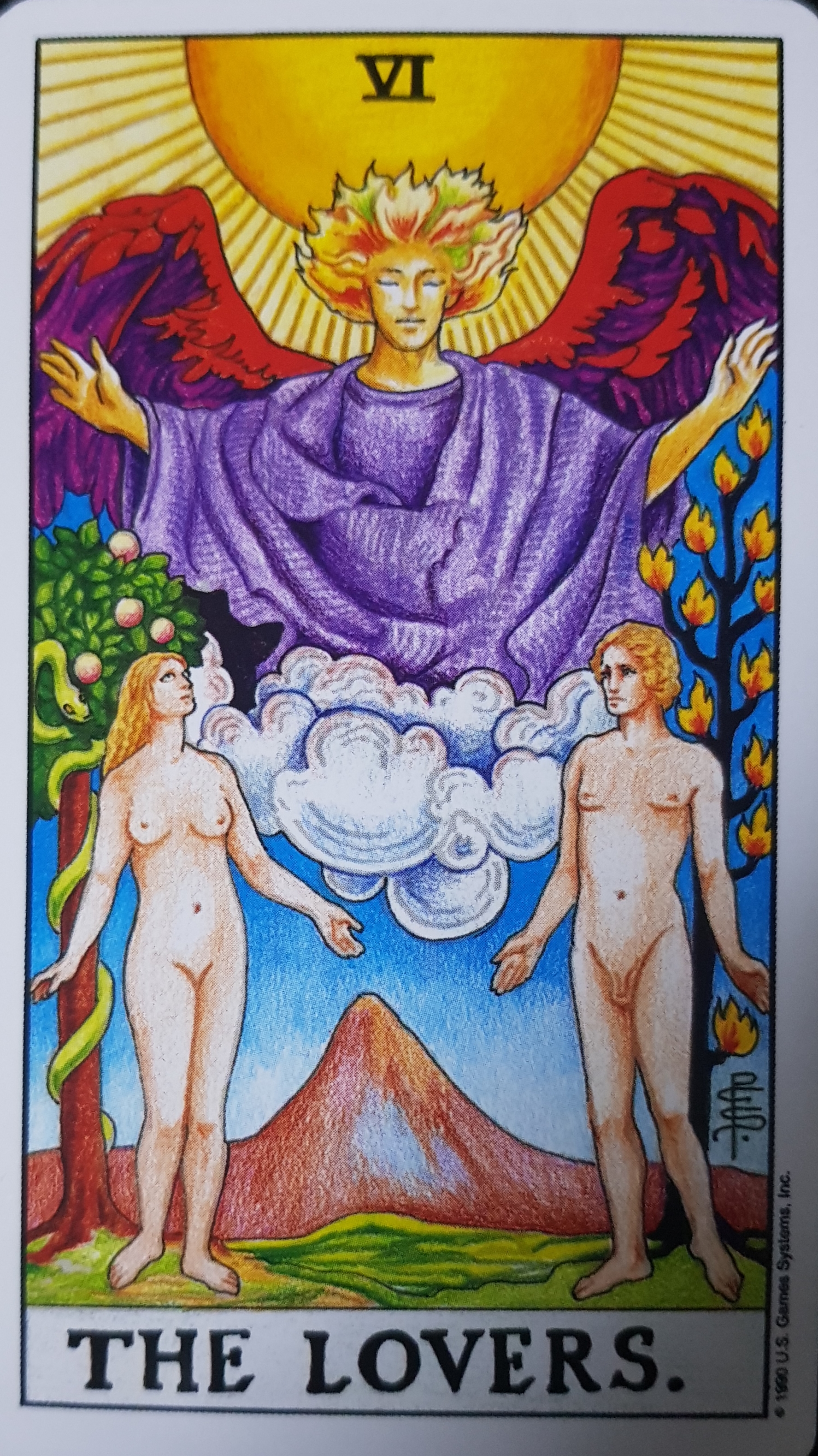 이브가 아담의 갈비뼈로 만들어졌던 둘은 같은 하나이다 다윗의 별이 가진 여러 의미(지혜, 구원, 사랑, 조화)중에서 이 카드는 사랑과 조화를 상징한다.